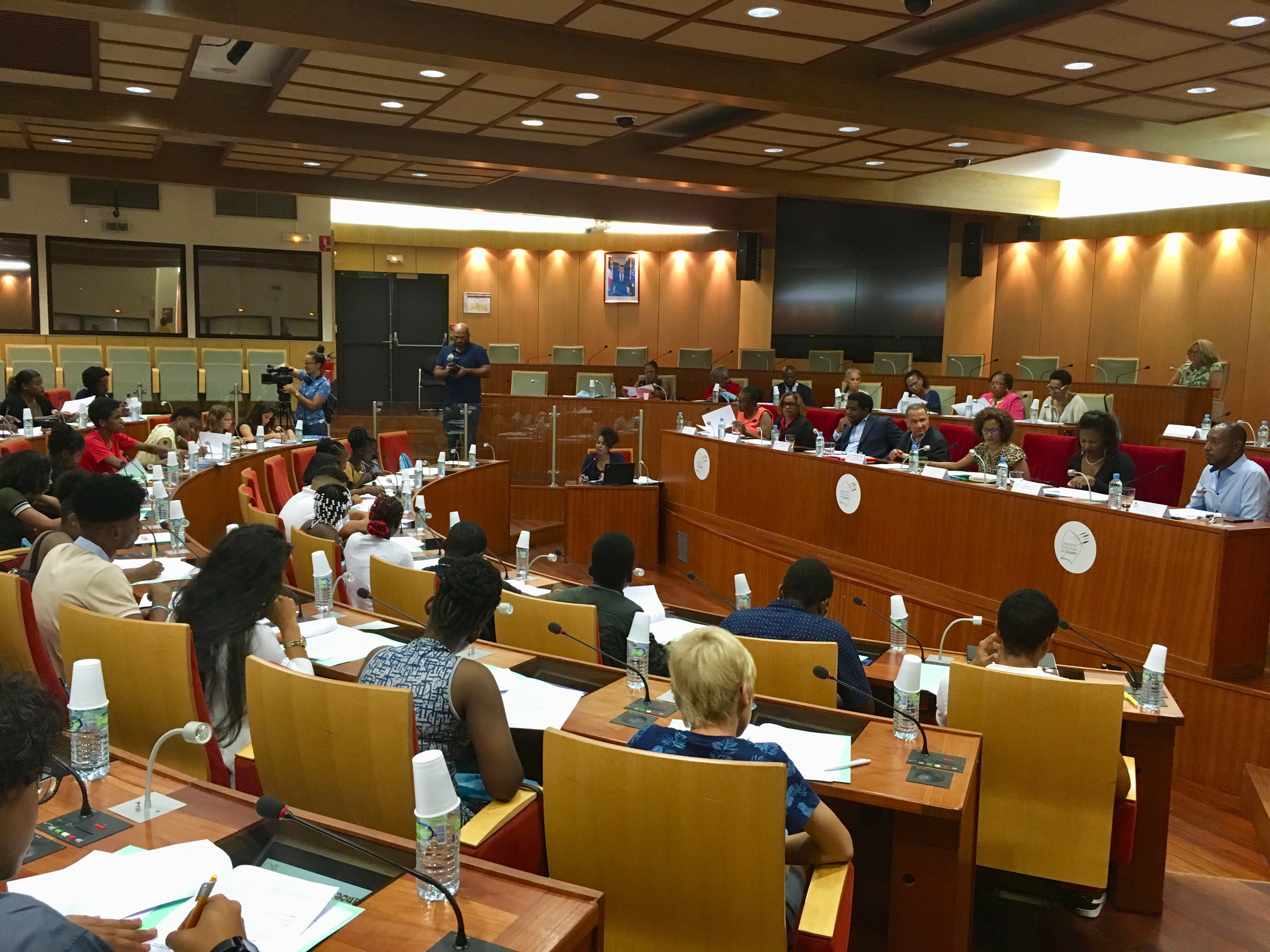 A cette occasion, 49 jeunes ont pris place au sein de l’hémicycle de l’Hôtel Territorial en présence notamment, du Président de la Collectivité Territoriale de Guyane, Rodolphe Alexandre, du Recteur de l’Académie de Guyane, Alain Ayong Le Kama, des Vices-Présidentes de la CTG, Audrey Marie (déléguée à la Petite Enfance et à la Jeunesse ) et Rolande Chalco-Lefay (en charge de la Culture, du Patrimoine et des Identités), des Conseillères Territoriales Elainne Jean et Céline Régis, du Président du Centre de ressources politiques de la Ville de Guyane, Jean-Raymond Passard et de plusieurs chefs d’établissements.